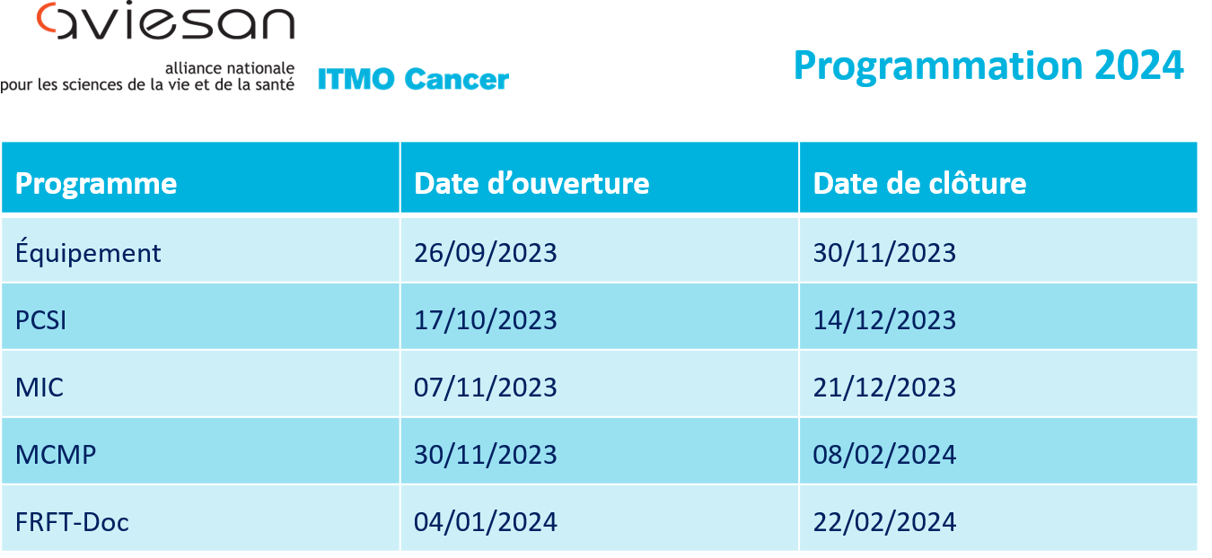 | ITMO Cancer - AAP/AAC : Calendrier 2024 |