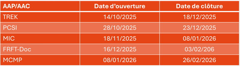 Date limite de soumission des pré-propositions : 12 janvier 2026 à 14h.